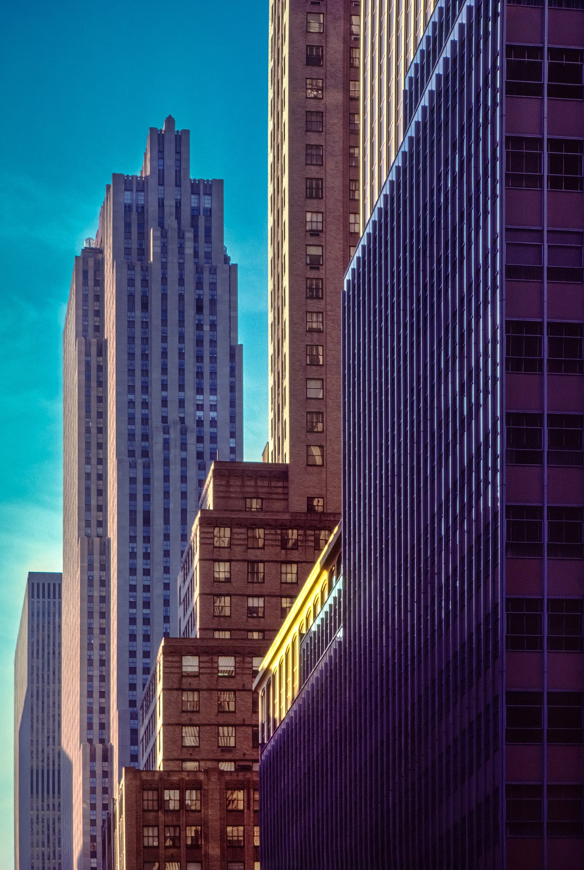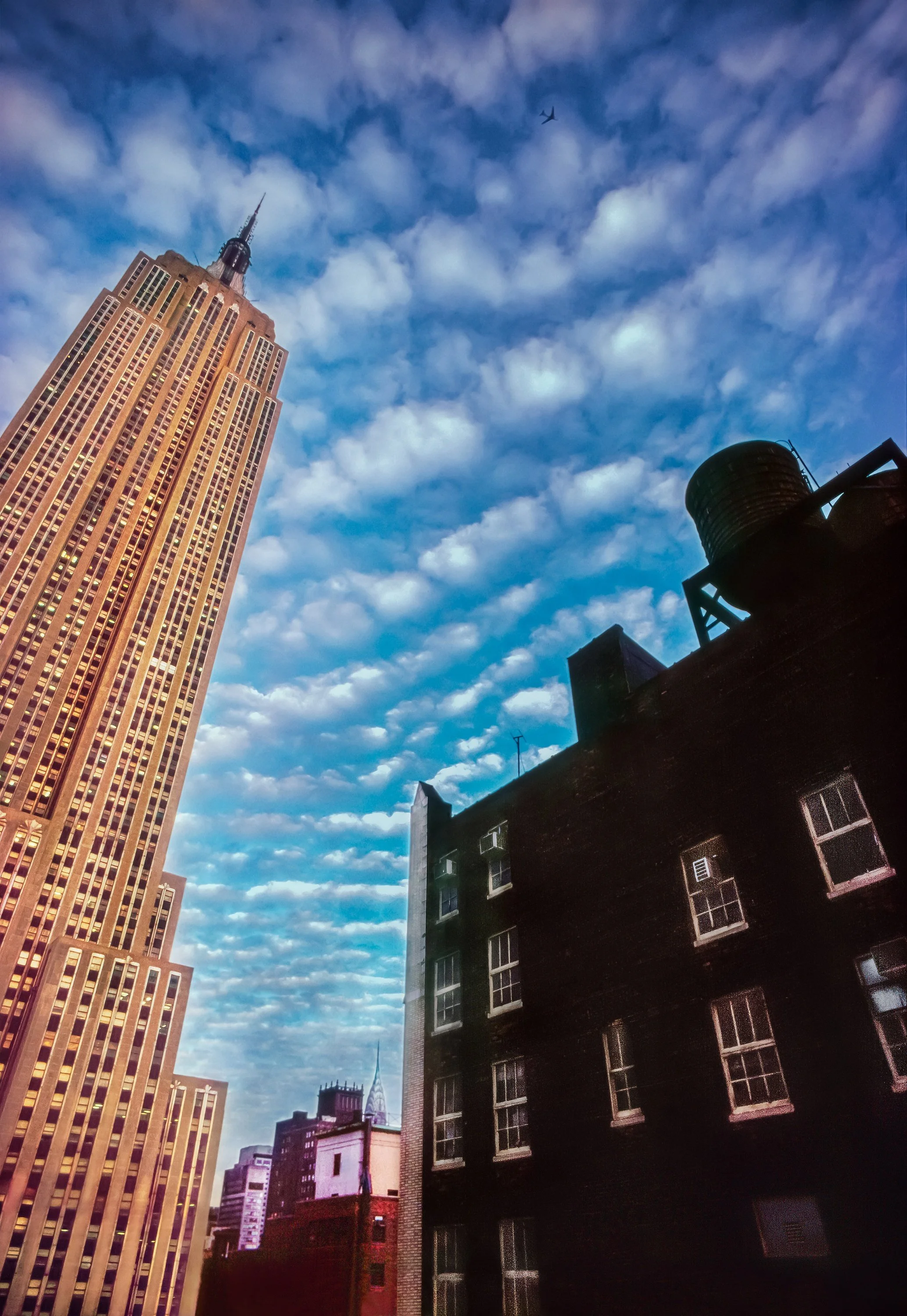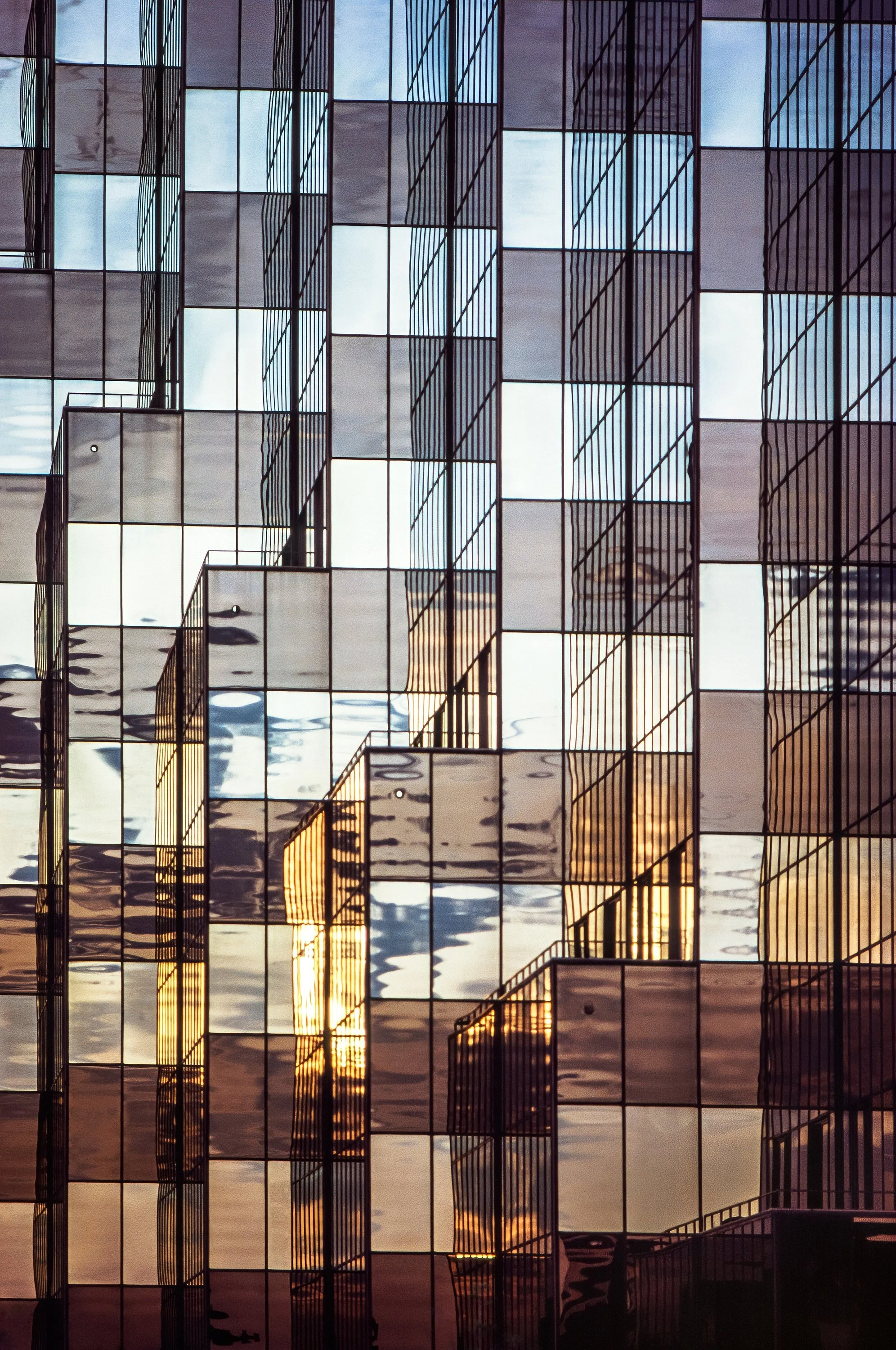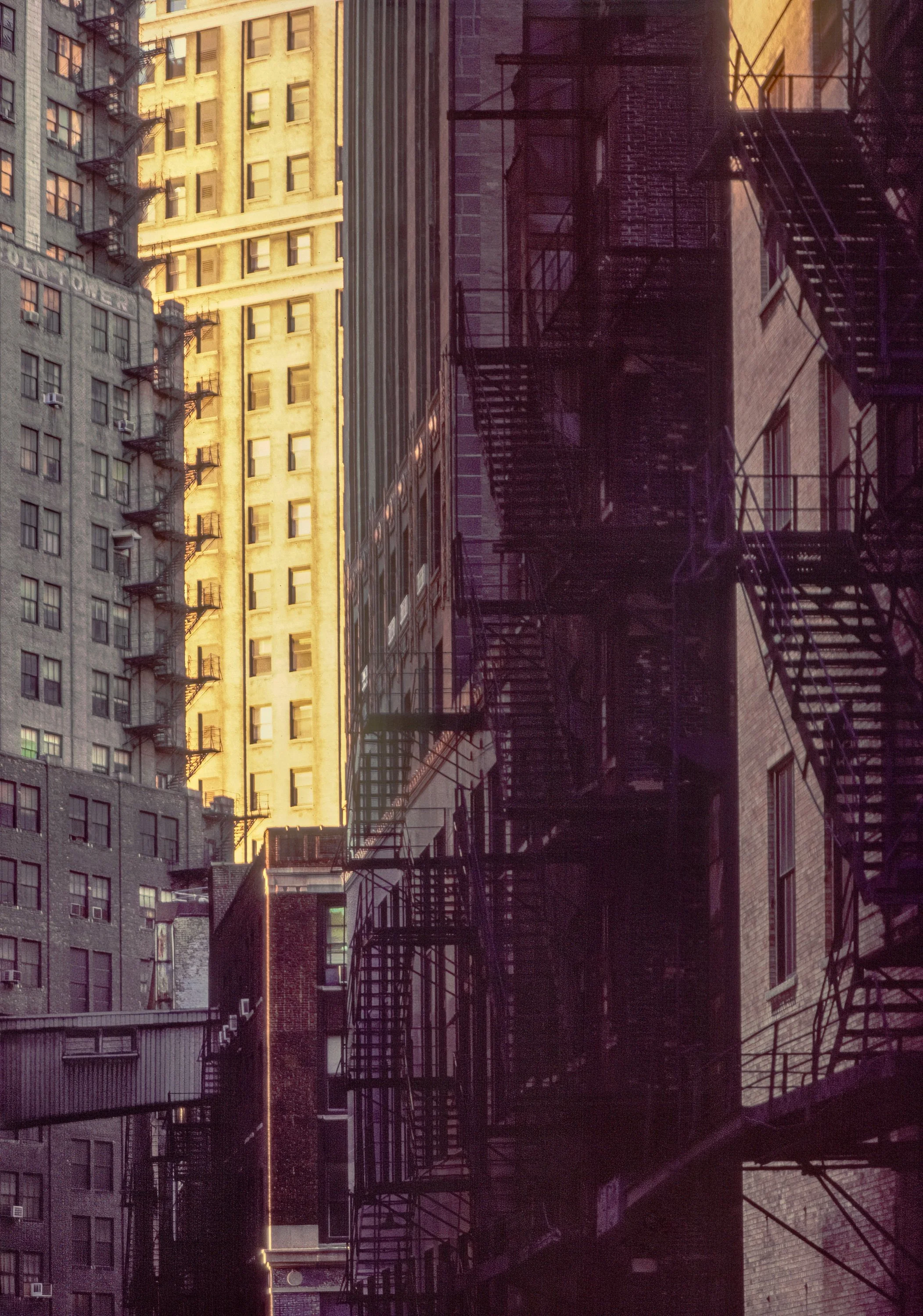 I became fascinated by how the light shifted throughout the day, casting reflections, creating shadows, and revealing graphic angles. Slowly, I began to notice not just what was in front of me, but what was above. The light moved across the buildings like a dancer, graceful and ever-changing.